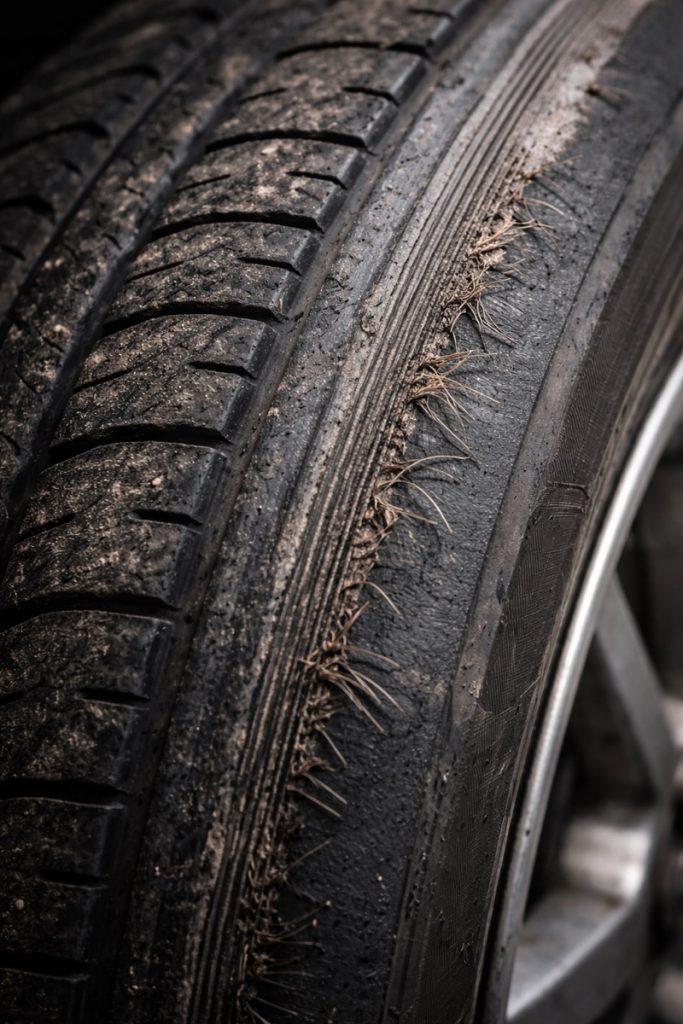 溝があっても、内側だけ減っている/外側だけ減っている、は要注意。段差・わだちでアライメントがズレていたり、足回りのガタが出ているサインになることがあります。